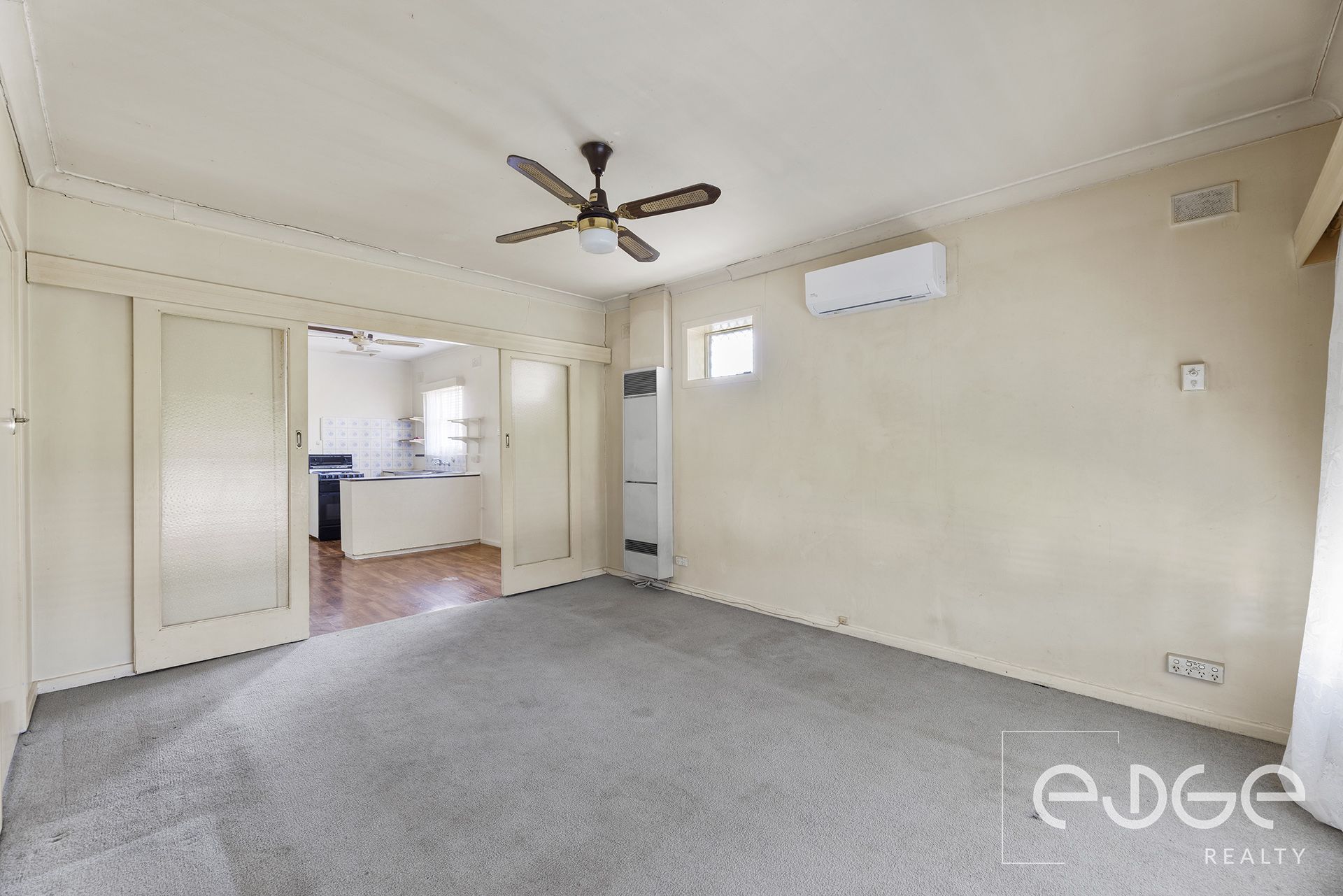 Step inside and be welcomed by the spacious lounge room just off the entry, where carpet flooring, a ceiling fan and reverse-cycle air conditioning, ensuring comfort all year round.