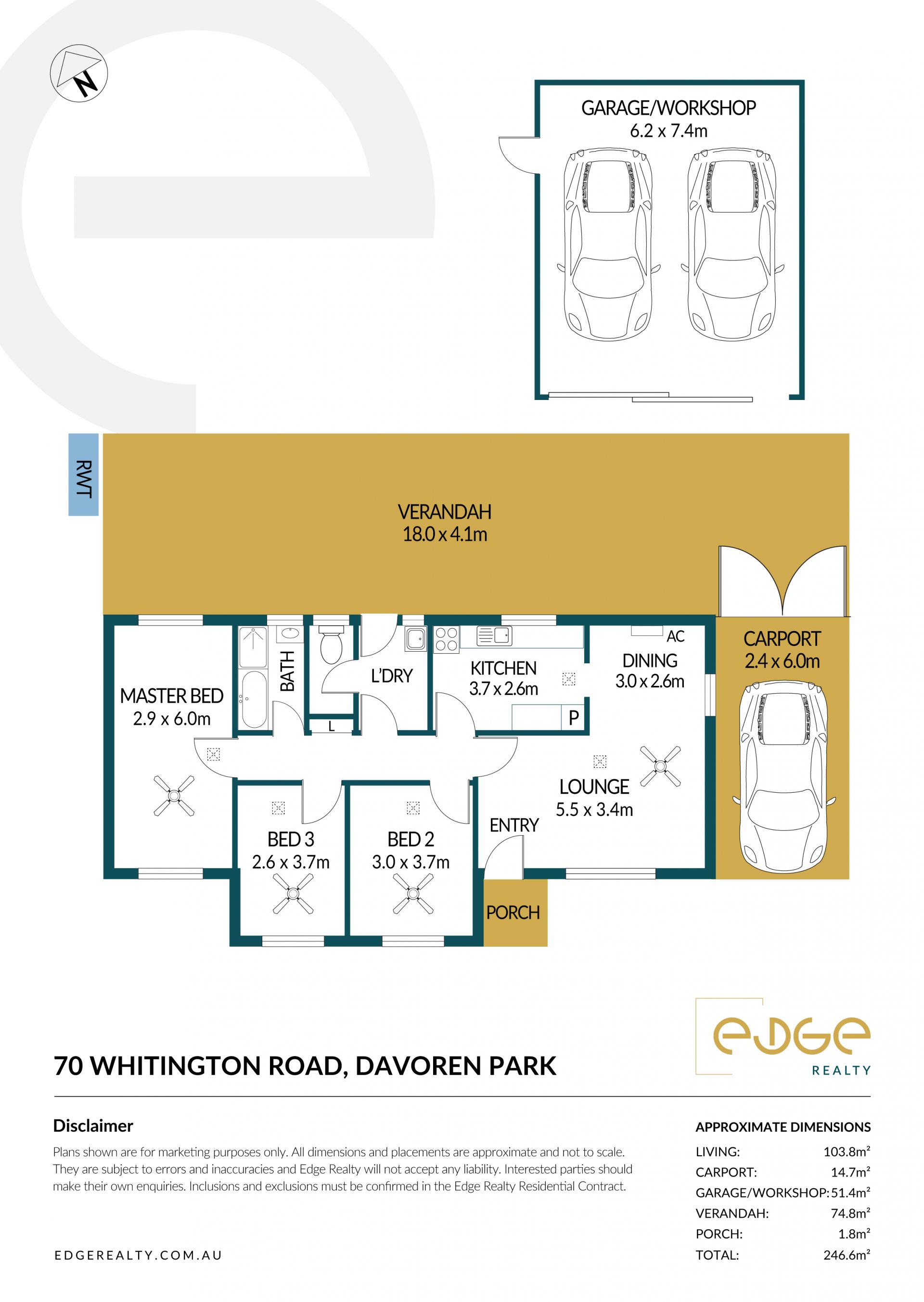 - Separate 6.2mx7.4m garage/workshop