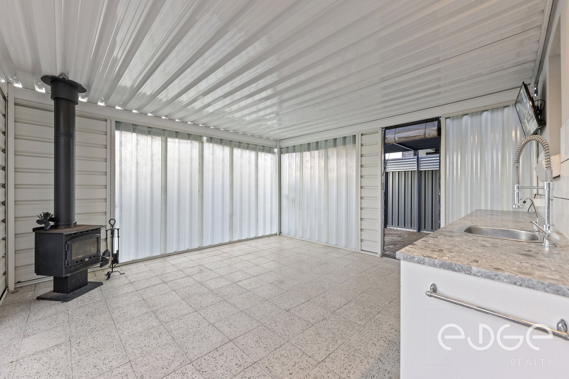 - Outdoor entertaining verandah with combustion heater, kitchenette and TV