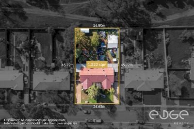 Outside, the potential is equally impressive. An expansive verandah overlooks the large backyard, offering ample space for children, pets, or future landscaping projects. Secure gates from the driveway lead to the carport, providing ample off-street parking while a shed at 95 Donnington adds further storage. The two homes are in need of a little TLC, but for those with an eye for future potential, there is scope for this expansive and centrally located site to be redeveloped (Subject to Approval from Council & All Other Relevant Authorities).