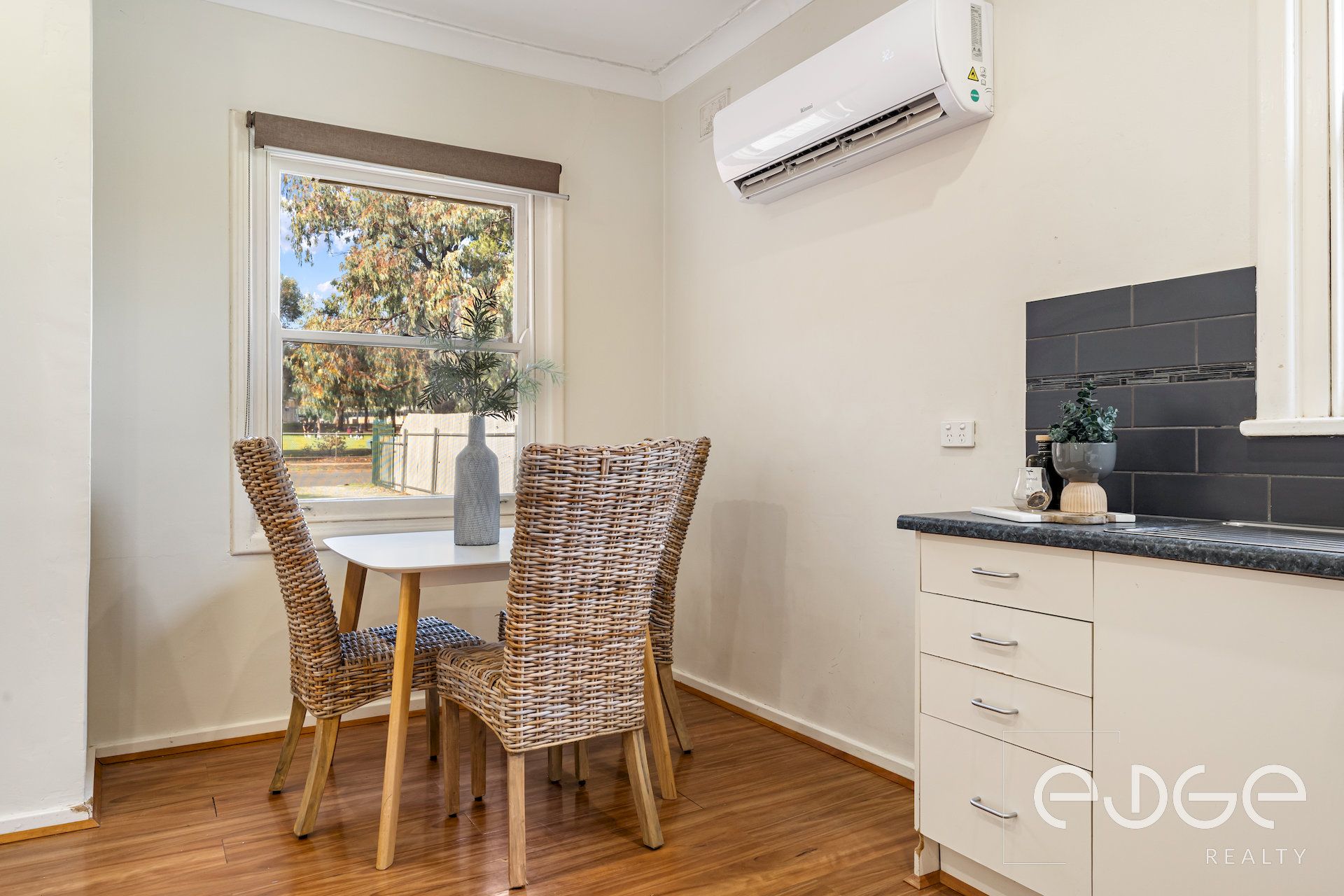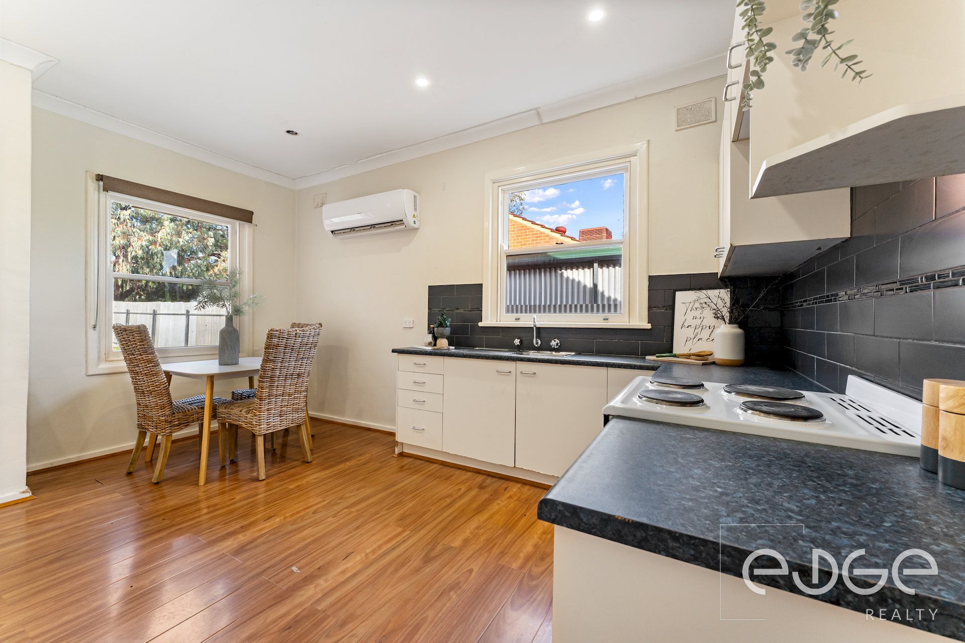 - Ducted evaporative cooling throughout, plus reverse-cycle split-system air-conditioning in the kitchen/meals