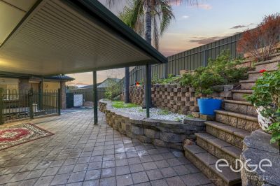 Outside, the rear verandah is surrounded by tiered, low-maintenance gardens, creating a serene backdrop for family gatherings. Relax in the spa under a pitched roof or utilise the two sheds for extra storage. Double side gates with corner access to Modra Circuit add convenience.