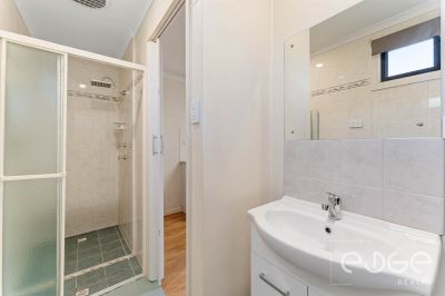 Both bedrooms provide a serene sanctuary featuring mirrored built-in robes, roller blinds and comfortable carpet flooring. The master comes with roller shutters and a ceiling fan, while bedroom 2 enjoys direct access to the backyard. They are serviced by a central bathroom featuring a step-in shower, vanity, and toilet.
