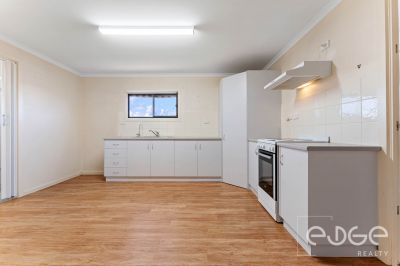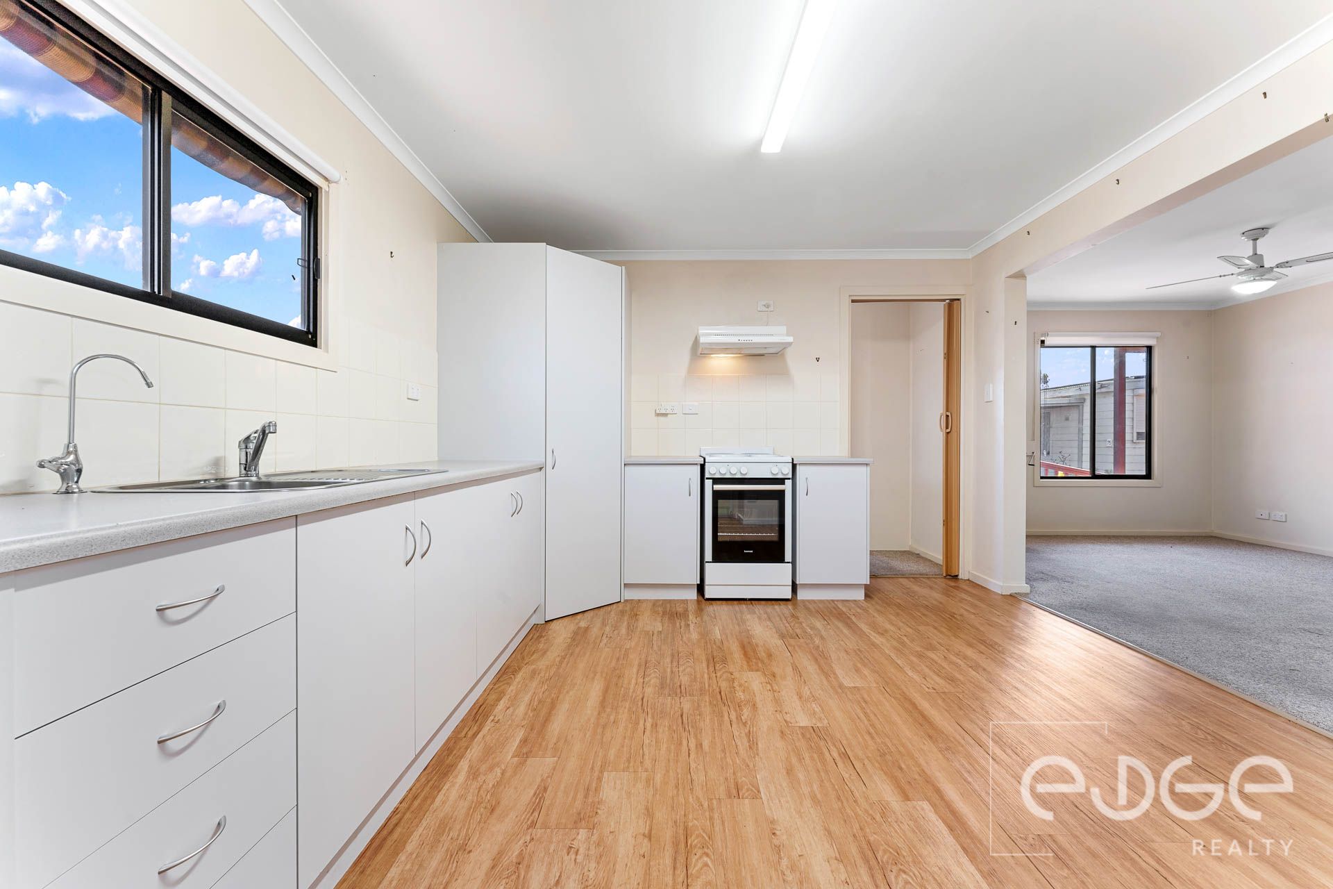 From here you can head into the kitchen/meals area. In the U-shaped kitchen you'll find a built-in pantry for extra storage, a freestanding Euromaid electric cooktop and oven, plus a single sink to make clean up a breeze. Durable laminate cabinetry and benchtops provide ample preparation and storage space for all your culinary needs. Easy-care vinyl floating floors complete this functional space.
