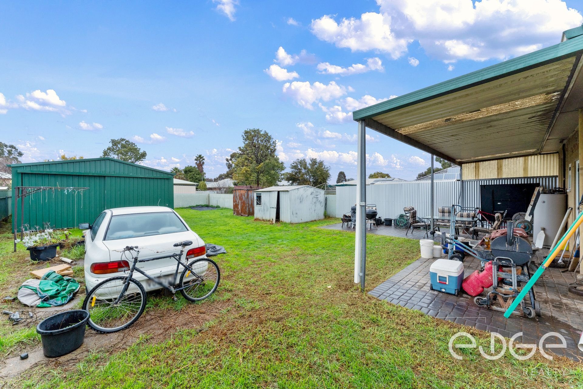 A full-width rear verandah with stamped concrete flooring provides a great space for entertaining, while a sunny adjoining patio and huge backyard offer plenty of room for the kids and pets to play. There's scope to add your own touches, whether you're dreaming of a veggie garden or grand outdoor entertaining zone (Subject to Approval from Council & All Other Relevant Authorities). A concrete driveway with double gates leads through to a 6x6m garage for secure parking or to work on your next DIY project, plus there are two additional sheds for all your storage needs.