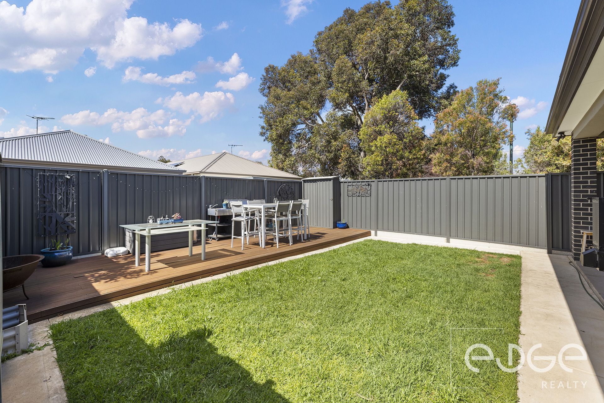 Let the fun spill outdoors under the alfresco where you can sip your morning coffee as the kids and pets play in the fully fenced yard. The decked patio offers a stylish spot for dining under the stars, weekend barbecues, or simply relaxing while basking in the sunshine.