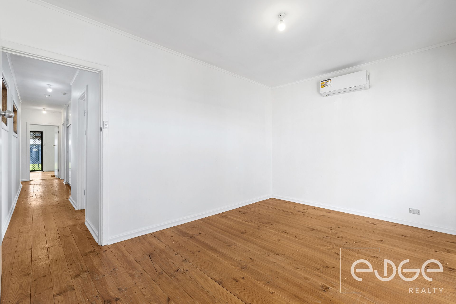 Step inside to a spacious front lounge room that welcomes you with natural light, pine floorboards and a feature mantle that adds character to the space. Reverse cycle air conditioning keeps the room comfortable year round while the roller shutters offer privacy and extra peace of mind. This is a warm and inviting area for daily living or family gatherings.