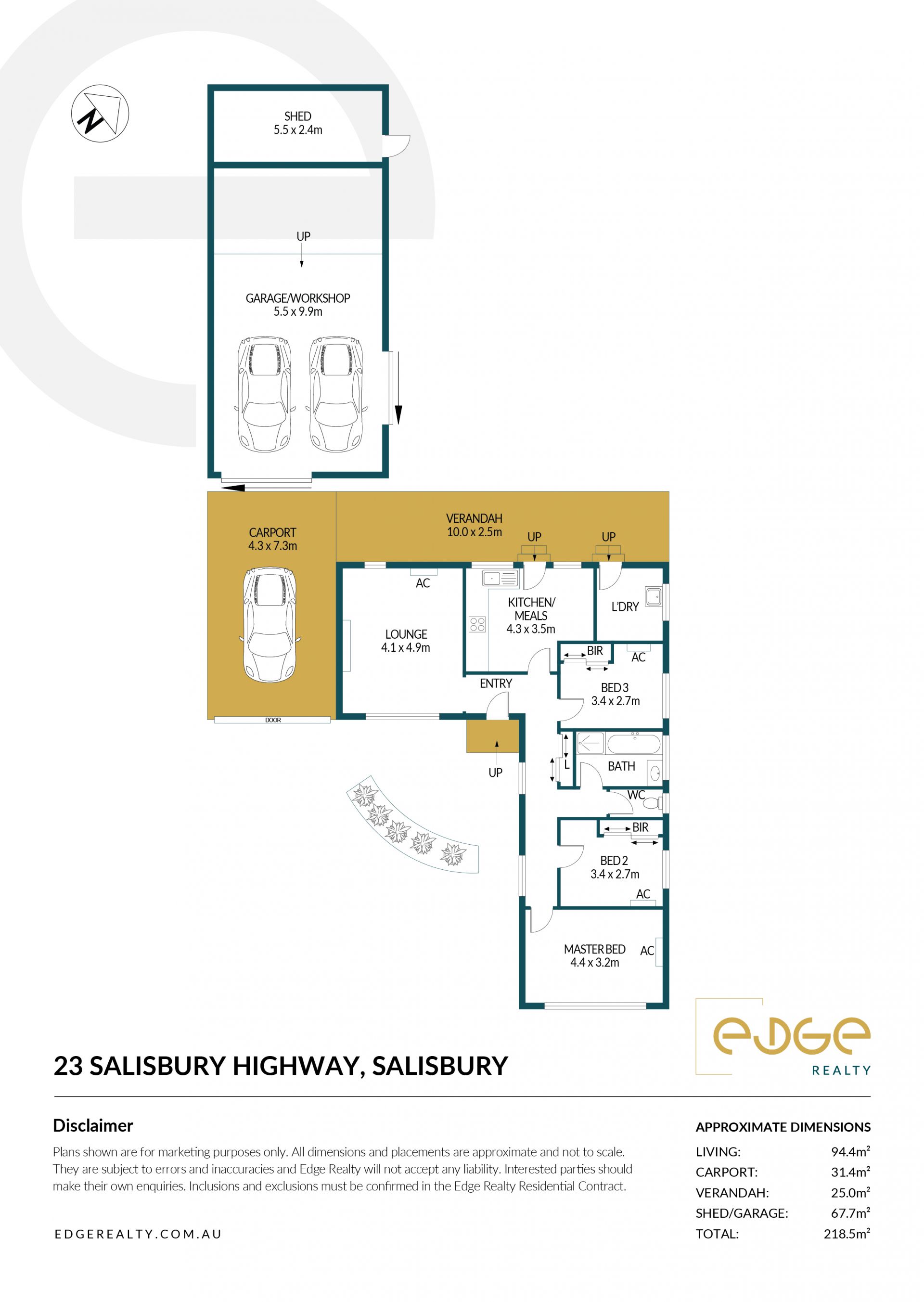 Total Building / 218.5sqm (approx)