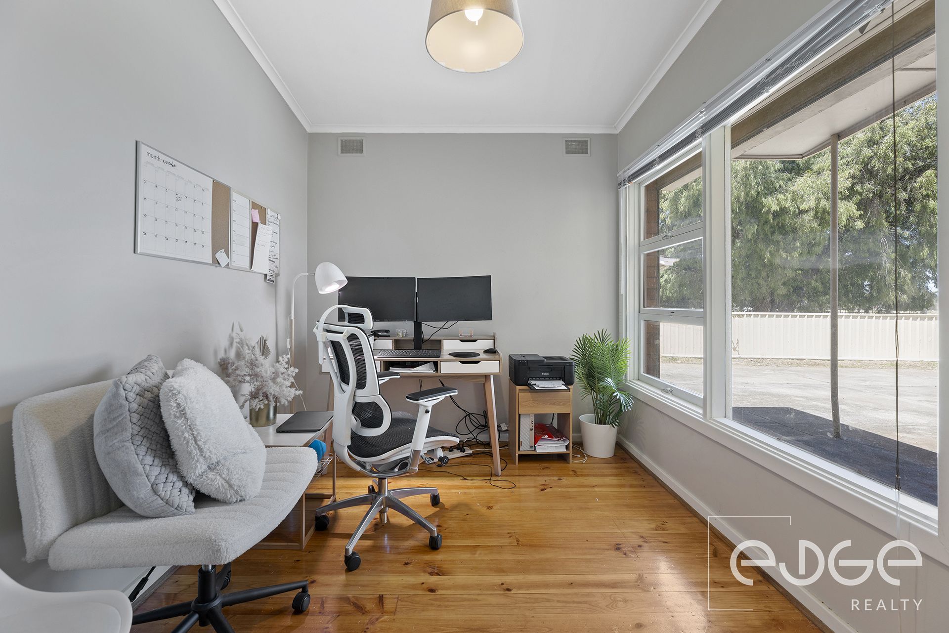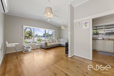 Set on a generous allotment, the home delivers a comfortable layout with plenty of potential to enhance or personalise. Step inside and you are welcomed into the front lounge and dining area, a spacious and calming space filled with natural light. Polished pine floorboards, a ceiling fan and large front windows contribute to the relaxed and welcoming atmosphere.