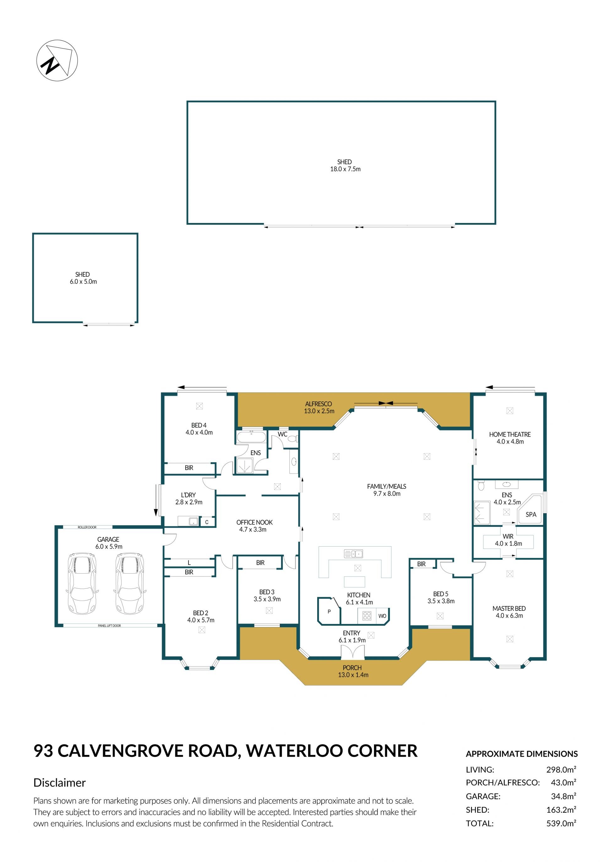 - A 6x5m and 18x7.5m shed